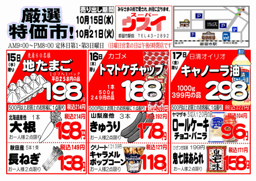 - 10月15日から21日までのお買い得品(スーパーウスイ)on 2025-10-14